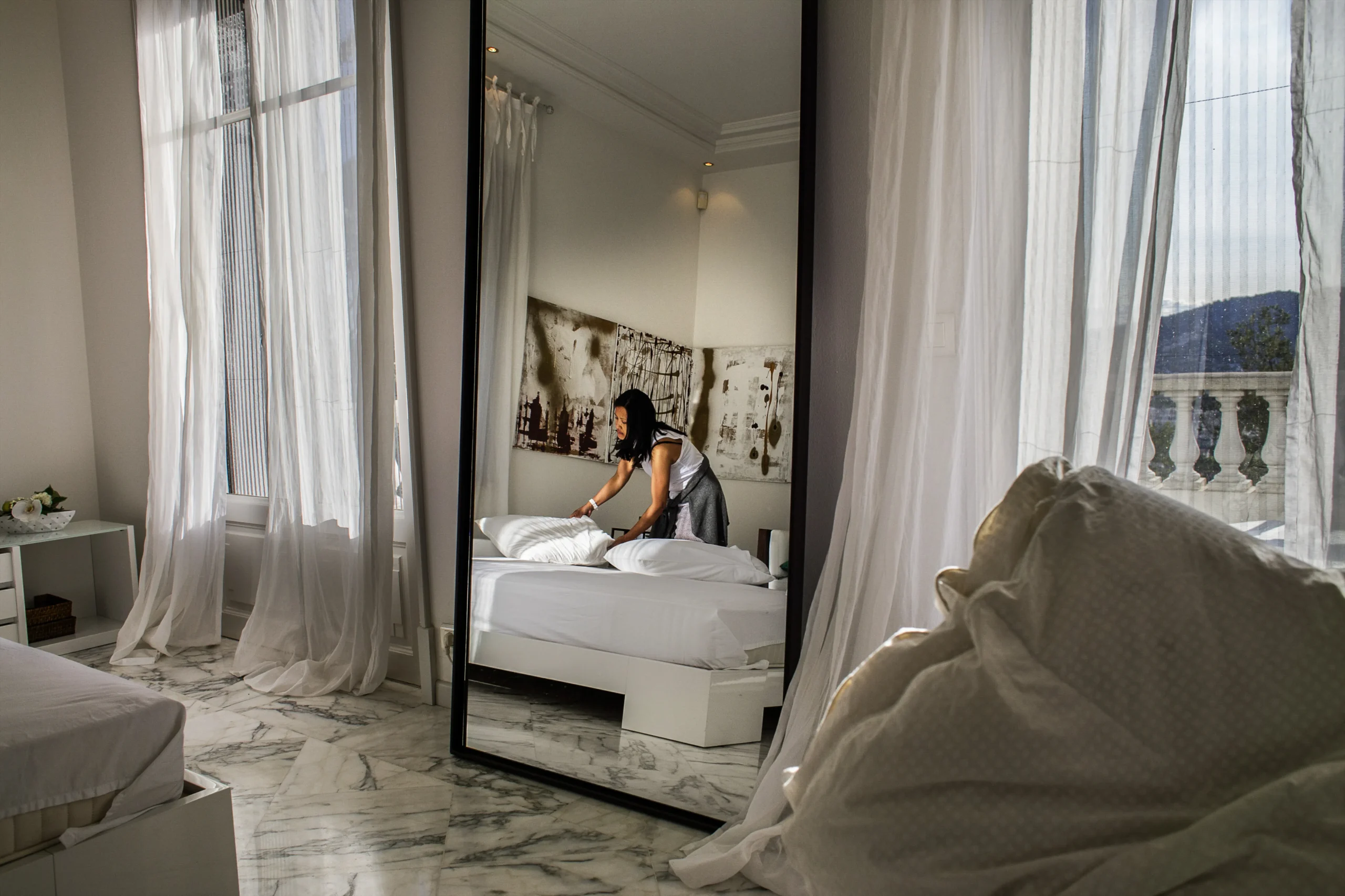 Durante diez años el fotógrafo Thomas Morel Fort siguió a Donna, una mujer filipina que realiza trabajos domésticos en París y cuya vida revela la arquitectura invisible de la migración: el duelo, la fuerza y los lazos que mantienen familias separadas. Exiliada para educar a sus hijos, pagó 13.000 euros para llegar y envía casi todo su salario a su país. Sin papeles desde hace catorce años, no puede volver a Filipinas; su sacrificio es un acto de amor y resistencia. Como muchas mujeres del Sur Global, sufre precariedad y explotación laboral.